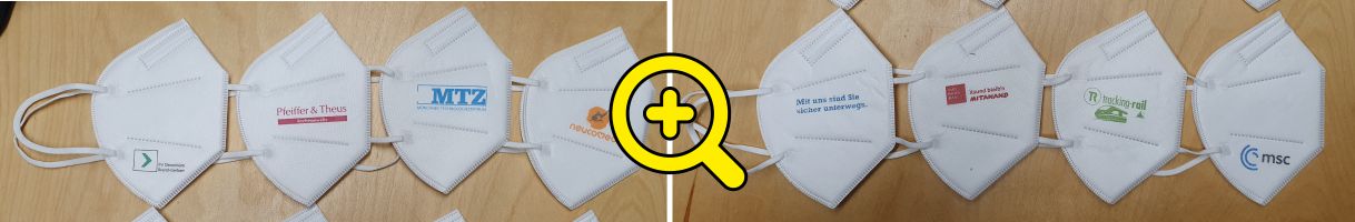 Mit der Erfahrung von mehreren Million bedruckten FFP2 Masken, drucken wir jedes Logo sicher und präzise auf jede Maske!
