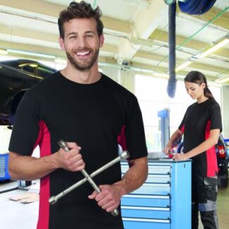 Mit dem eigenen Firmenlogo erscheint diese funktionale Arbeitskleidung noch eleganter: Das Logo lässt sich aufdrucken oder besticken, womit sich das Poloshirt in Piqué Optik auch für den Verkaufsaußenbereich eignet. Kontrastfarben als Seiteneinsätze lassen es besonders cool aussehen.