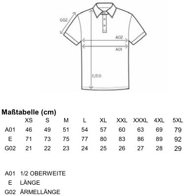- Textilgrößen: XS | S | M | L | XL | XXL | 3XL | (bis 5XL erhältlich)