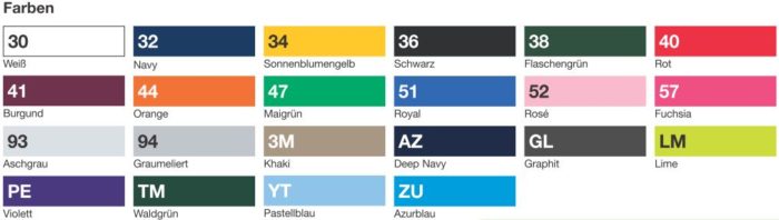 Textilfarben des Polohemdes in großer Auswahl