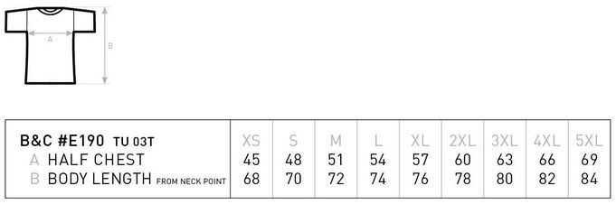 Konfektionsgrößen vom T-Shirt BCTU03T E190 von B&C zum Bedrucken