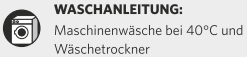 - trocknen bei niedrigen Temperaturen im Trockner erlaubt