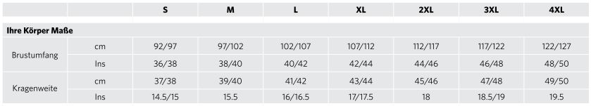 Entnehmen Sie aus der unteren Tabelle die genauen Konfektionsmaße, damit die personalisierte Hemden perfekt sitzen und knitterfrei jeden langen Messetag überstehen.