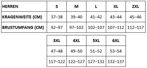 - Größenlauf: S (37/38) | M (39/40) | L (41/42) | XL (43/44) | XXL (45/46) | 3XL (47/48) | 4XL (49/50)